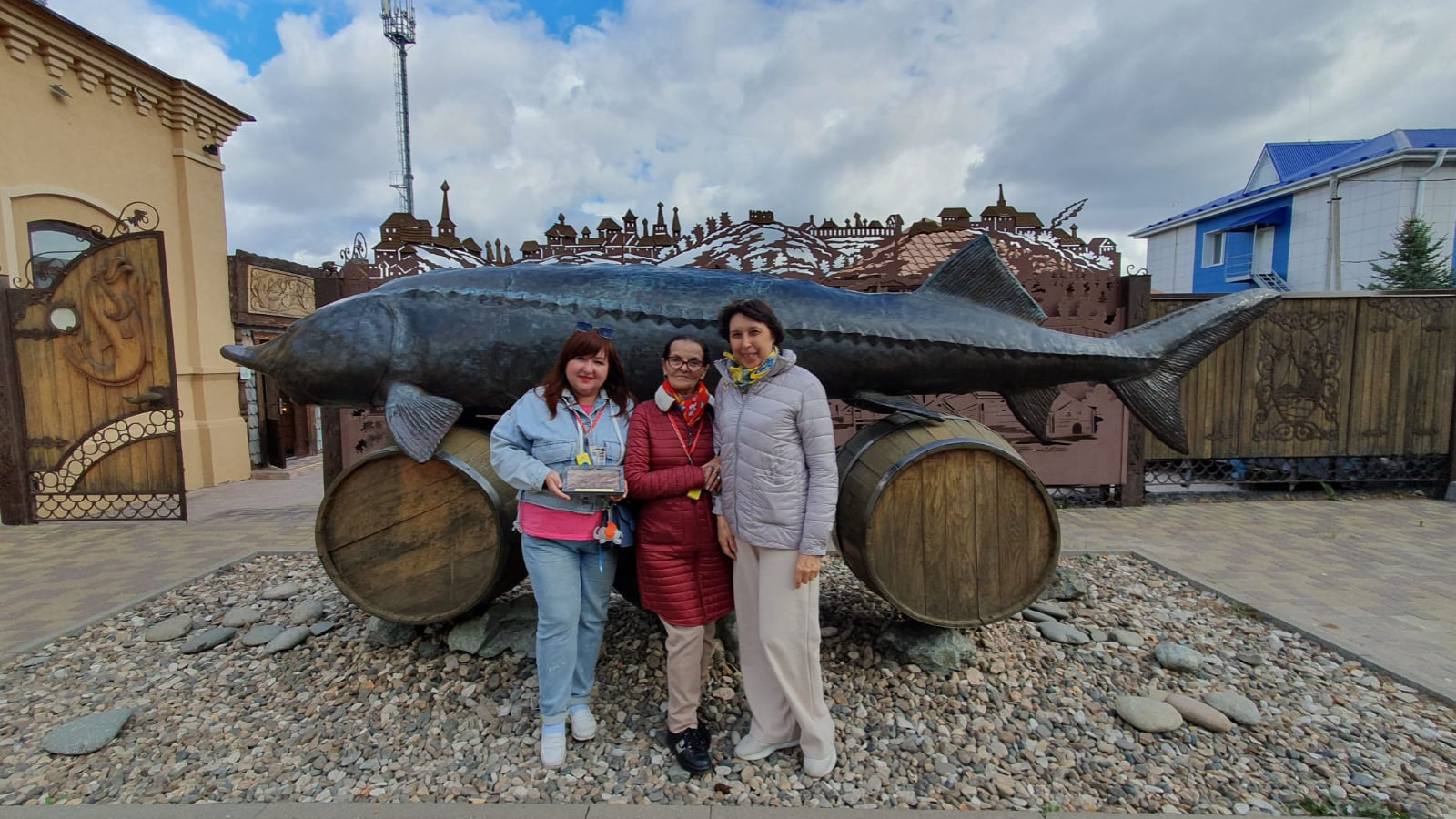Пятиметровый бронзовый памятник сложно не заметить. Туристы практически всегда останавливаются возле этого феномена для того, чтобы сделать прекрасные фотографии. Большая Белуга установлена на трех бочках из дерева. Монумент сооружен ко дню рыбака. Его общий облик яркий и внушительный. При этом он достаточно органично смотрится в данной местности. Скульптор чудотворения – Валиуллин. Это детище является олицетворением большой важности мелкого рыбного промысла. В 1921 году в здешних водах была поймана огромная царь-рыба. Скульптура монтирована возле входа в выставочный двор. Его мы также посетили и ознакомились с традициями рыбного промысла.