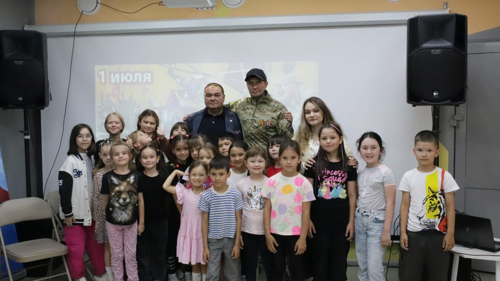 Фахрутдинов Алям Анварович- председатель комиссии по патриотическому воспитанию молодежи, член Президиума районного Совета ветеранов (пенсионеров), член лекторской группы, участник боевых действий в Чеченской Республике организовал встречу с воспитанниками детского лагеря. Он пригласил бойца СВО Грудинина Вадима. Это была очень важная и трогательная встреча для ребят. Герои рассказали о своей службе, о настоящем мужестве, дружбе, взаимовыручке и любви к Родине. Дети слушали с большим вниманием и интересом, задавали много вопросов — от бытовых до самых серьёзных. Ответы были честными, добрыми и вдохновляющими. Такие встречи помогают детям лучше понимать, что такое долг, честь и патриотизм.