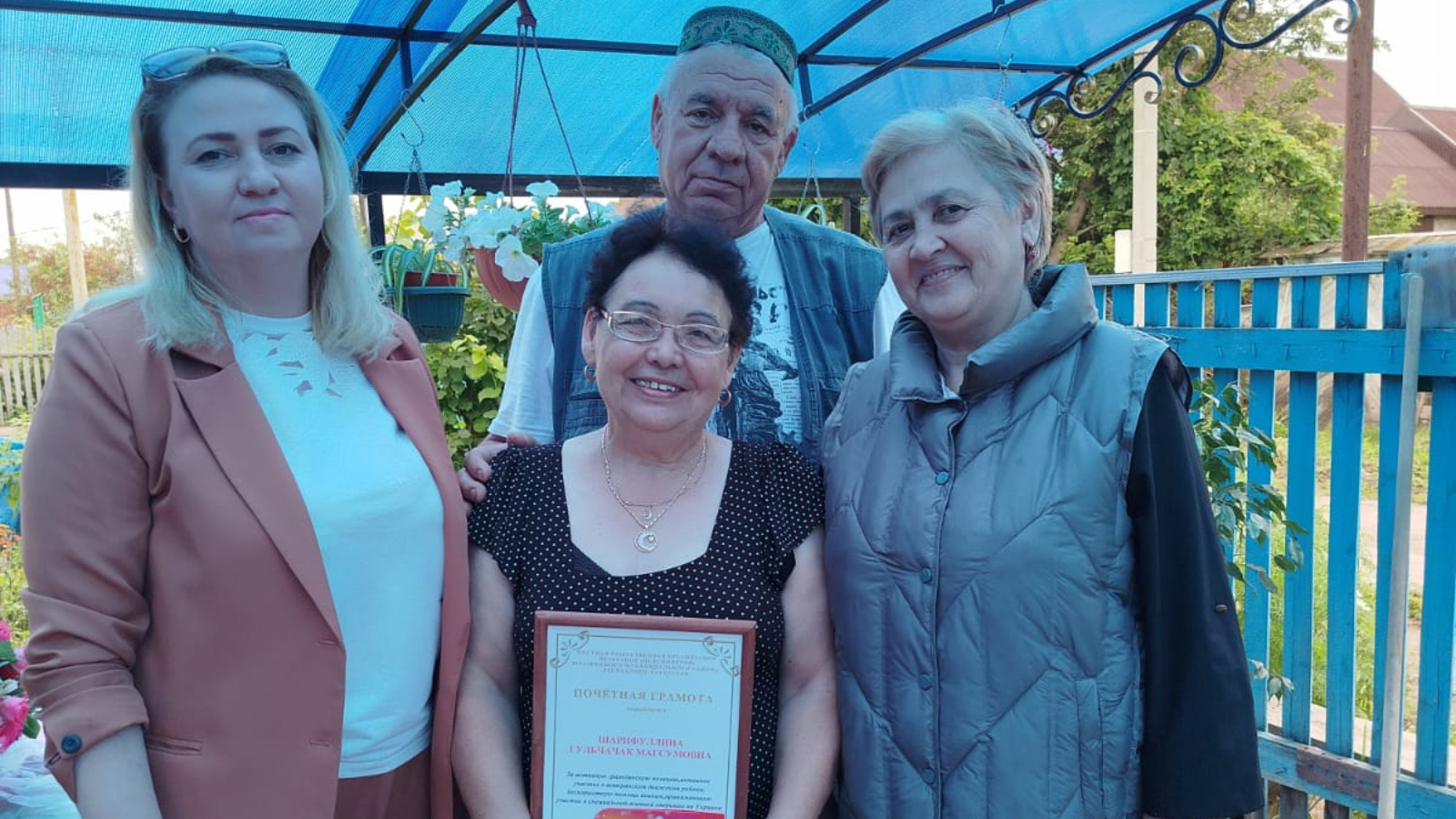 Председатель Совета ветеранов (пенсионеров) Г. Н. Латыпова посетила семью Шарифуллиных, родителей участника СВО. Поздравила с Днем семьи, любви и верности. Супруге, Гульчачак Магсумовне, вручила Почетную грамоту. Она активный участник всех проводимых мероприятий, оказывает постоянную помощь в зону СВО. Пожелала семье Шарифуллиных крепкого здоровья, семейного счастья, долгой совместной жизни, скорейшего возвращения сына, живым, здоровым, с Победой.