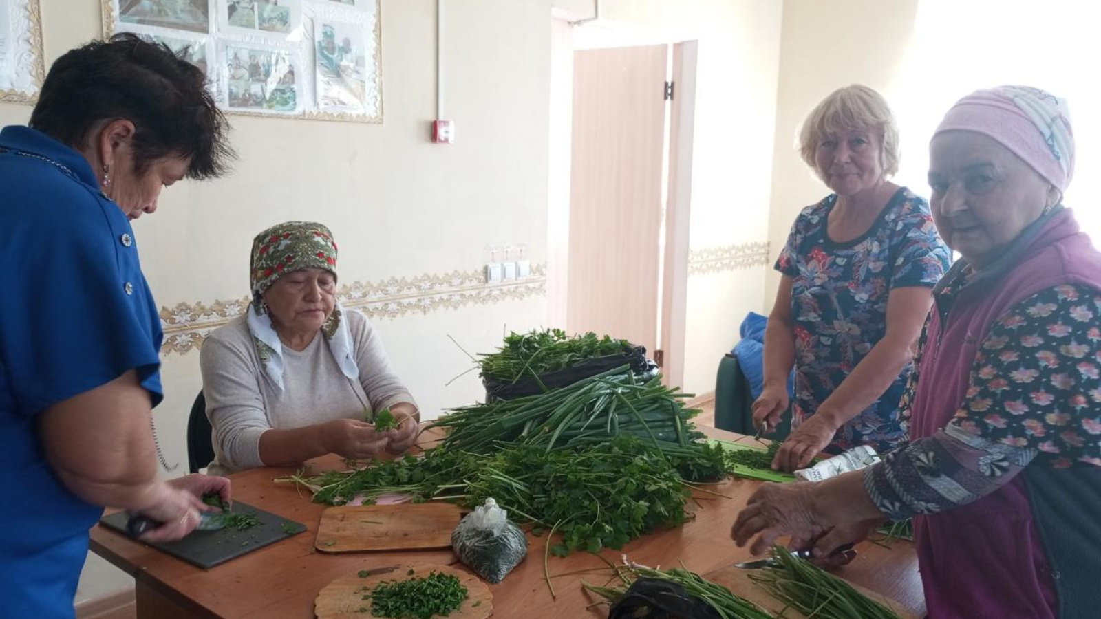 Они издавна славятся своим умением выращивать по-настоящему богатый урожай. Но их главное богатство – не только плодородная земля, а добрые и отзывчивые сердца. Они не просто собирают урожай для своих семей, но и с готовностью делятся им с теми, кто в этом особенно нуждается. На этот раз ветераны села объединились для важной и благородной миссии – поддержки участников специальной военной операции. Они принесли и заготовили огромное количество свежей зелени: укроп, петрушку, лук, кинзу и многое другое. Вся эта зелень будет высушена и приготовлена для отправки в составе наборов для сухих супов нашим защитникам. «Это наша маленькая помощь, наше спасибо и наша вера в них, — говорит председатель Совета ветераноа (пенсионеров) Хайретдинова Зухра Махасиновна. Пусть даже такая простая вещь, как ароматный суп с зеленью с родной земли, напомнит нашим бойцам о доме, придаст сил и уверенности». Это мероприятие не просто урок садоводства, а живой пример того, как любовь к земле и любовь к Родине сливаются в одно целое.