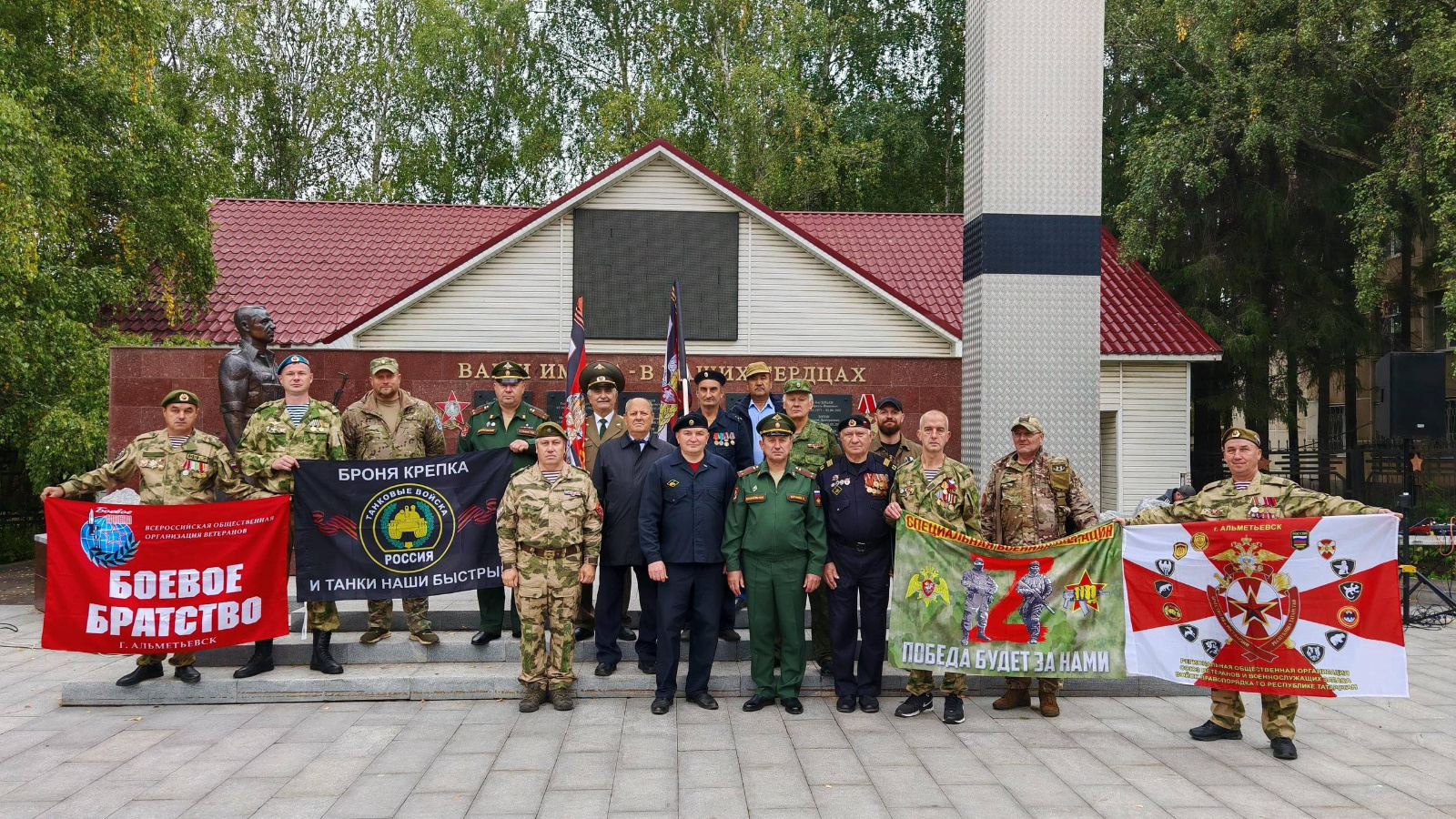 Ветераны Альметьевского «БОЕВОГО БРАТСТВА» торжественно отметили День танкиста 14 сентября ветераны «БОЕВОГО БРАТСТВА» организовали масштабное празднование Дня танкиста на Площади Памяти. Торжественный митинг объединил все поколения. В ходе мероприятия участники возложили цветы к мемориалу павших героев, почтили их память минутой молчания и провели награждение ветеранов-танкистов и участников боевых действий. «Танковые войска — это стальная воля России, её броневой щит! Сегодня мы не просто отдаём дань уважения героям, а передаём эстафету памяти молодому поколению», — подчеркнул руководитель «БОЕВОГО БРАТСТВА» Юрий Максимов. Особые слова благодарности прозвучалив адрес ветеранов-танкистов, чей боевой опыт и мужество остаются примером для всех нас. В торжественном мероприятии принял участие председатель Совета ветеранов Альметьевского МР Яшанин В.И.
