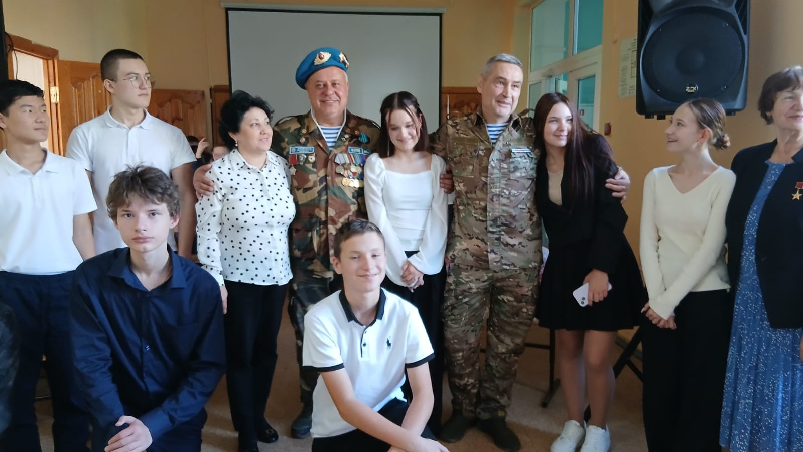 Цель нашего прихода: познакомиться с учениками 5-8 классов, провести беседы на злободневные вопросы воспитания. Беседа проходила в форме диалога: ребята охотно включались в разговор, отвечали на вопросы с убеждением в своей правоте: о Родине, о малой Родине, о патриотизме, дружбе, взаимоотношениях с одноклассниками; что такое "Семья", о профессиях родителей. Не обошли стороной вопросы о СВО, о гуманитарной помощи. Интересовались службой в Армии, войной в Афганистане.