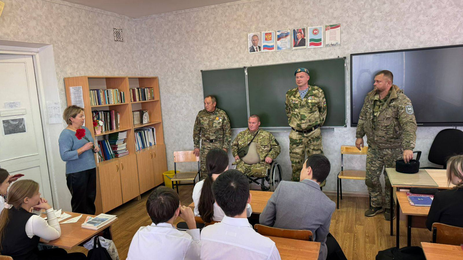 Ветераны СВО провели урок мужества в школе №20 В день исторического воссоединения Донецкой и Луганской Народных Республик, Херсонской и Запорожской областейс Россией ветераны Альметьевского «БОЕВОГО БРАТСТВА» провели особый Урок мужества для старшеклассников школы №20, который подарил всем присутствующим трогательный и незабываемый момент. Ветераны рассказали ученикам о реальных подвигах российских военных, описали будни на передовой и трудности, с которыми сталкиваются бойцы. А также объяснили, что именно помогает им выстоять — вера в правоту дела и поддержка сограждан. Так, участник СВО Рамис Хайбунасов рассказал, что для него и других бойцов очень ценными и дорогими были письма от детей со словами поддержки. Во время встречи он показал бережно сохраненные письма, полученные на передовой от шестиклассников этой же школы. И каково же было удивление всех, когда оказалось, что в классе присутствовали те самые ребята, которые три года назад писали эти трогательные послания! Девятиклассники с волнением узнали свои письма и зачитали их вслух. Перед ребятами выступили настоящие герои нашего времени, члены Альметьевского «БОЕВОГО БРАТСТВА»: Емельянов Алексей — атаман Оренбургского казачьего