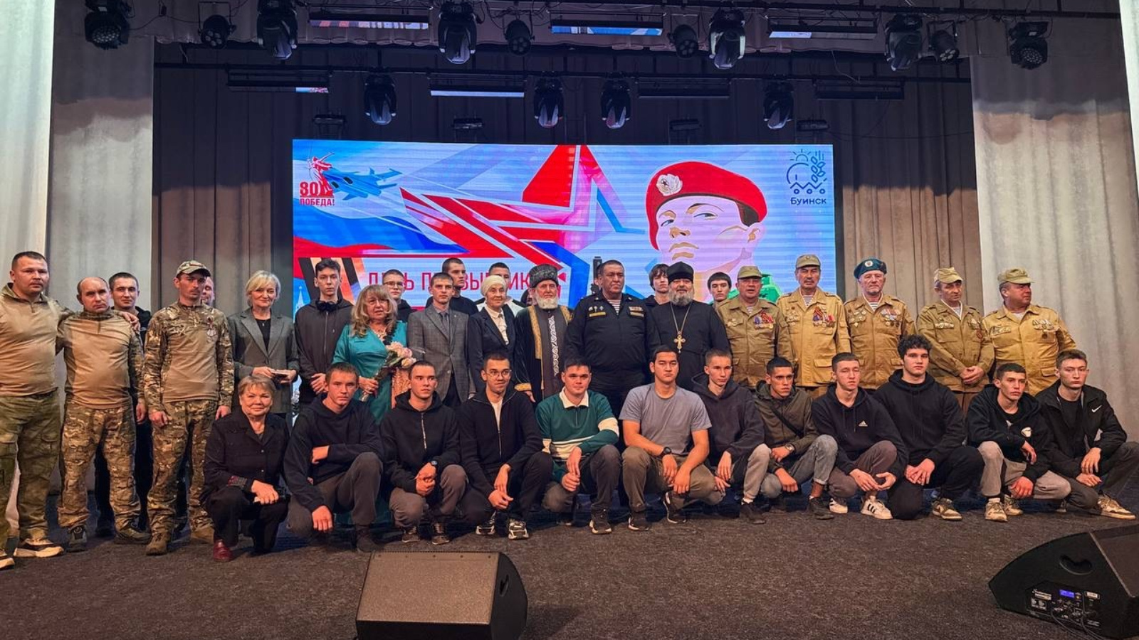 В Центре культурного развития Буинска прошло торжественное мероприятие, посвящённое осеннему призыву в ряды Вооружённых Сил Российской Федерации. На мероприятии участвовали - первый заместитель руководителя Исполнительного комитета Рифат Ринатович Хамидуллин, Военный комиссар по Буинскому и Дрожжановскому районам Радик Тухфатуллин председатель Совета ветеранов (пенсионеров ) Буинского муниципального района Зяугария Хуснетдинова, участник СВО Миловацкий Иван Александрович и представители боевых действии, ответным словом выступил призывник 2025 г.