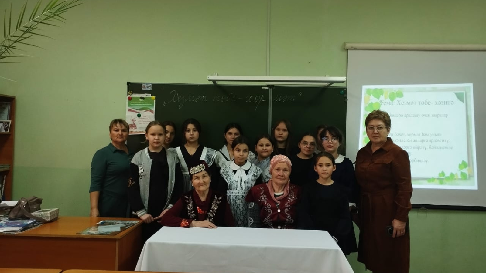 Баулы районы ветераннар советы президиум агзәсе,волонтер,педагогик хезмәт ветераны Шараева Рәзинә Закирҗан кызы Исергәп урта мәктәбендә өшлекле очрашулар кысасында мәктәп укучылары һәм укытучылары белән"Хезмәт төбе-хәзинә" дигән бик файдалы очрашу оештырды.