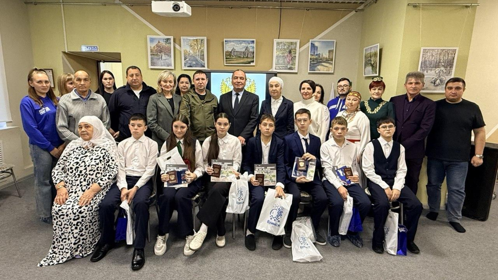 6 ноября 1992 года стало знаменательным днём для республики. У Татарстана появилась новая Конституция и новый праздник. Основной закон республики – это выражение воли многонационального народа региона 5 ноября в МБУ «Буинский краеведческий музей» состоялось торжественное вручение паспортов юным гражданам РФ, в рамках празднования Дня Конституции Республики Татарстан. Конституция Татарстана была принята 6 ноября 1992 года на XII сессии Верховного Совета республики. Создание этого важного правового документа сыграло значимую роль в развитии политической системы региона. В честь этого события 6 ноября объявлено в республике праздничным днем. Согласно Конституции республики, носителем суверенитета и единственным источником власти в республике является ее многонациональный народ, а права и свободы человека признаются высшей ценностью. С приветственным словом выступил Заместитель главы Буинского муниципального района Ильдар Еремеев. Семи юным гражданам паспорта РФ вручил Ильдар Еремеев и И.О начальника Отделения по вопросам миграции МВД России по Буинскому району Ильгиз Тухфатуллин. Юных граждан РФ поздравили: ветеран Специальной военной операции, социальный координатор филиала фонда «Защитники Отечества» в Республике Татарстан по Буинскому району Ильмар Галимов, председатель местной общественной организации ветеранов района Зяугария Хуснетдинова, исполнительный секретарь Буинского местного отделения партии "Единая Россия" Гельчечек Андреева, президент Совета местного отделения «Движения первых» Амина Халитова, специалист отдела по делам молодежи Анна Замалетдинова, директор МБУ «Буинский краеведческий музей» Люция Ахметзянова. От имени родителей со словами благодарности организаторам мероприятия выступила Лейсан Равилевна Мингалиева. Прозвучали песни в исполнении Заслуженного работника культуры РТ Виктора Моисеева, Розы Садретдиновой, Оксаны Карабаевой.