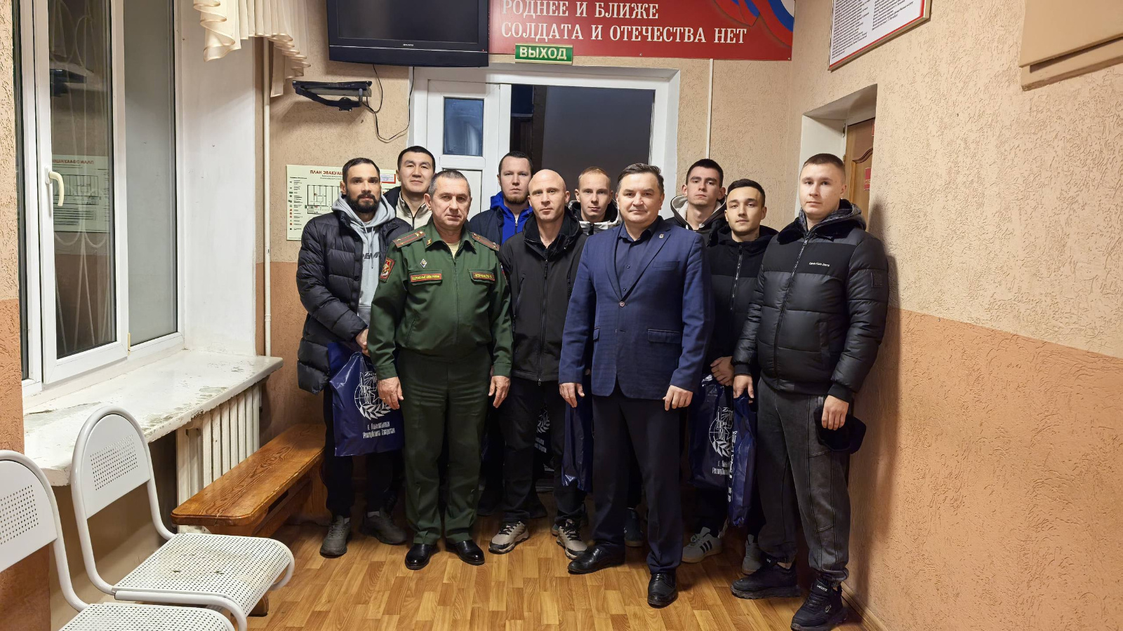 Руководитель «БОЕВОГО БРАТСТВА» Альметьевского МР принял участие в отправке добровольцев на службу по контракту Сегодня Альметьевске состоялась очередная отправка граждан для прохождения военной службы по контракту. 10 человек, успешно прошедших предварительный отбор и медицинскую комиссию, отправились к местам несения службы. В торжественной церемонии приняли участие военный комиссар Альметьевска Руслан Корников и руководитель местного отделения «БОЕВОГО БРАТСТВА» Юрий Максимов. Юрий Максимов вручил военнослужащим от Альметьевского Швейбата подарки: сшитые руками волонтеров «пятиточечники» и теплые шапки. Юрий Максимов обратился к добровольцам со словами: «Ваше решение служить Отечеству вызывает глубокое уважение. Вы — настоящие патриоты, и мы гордимся, что в нашем городе воспитываются такие достойные люди».