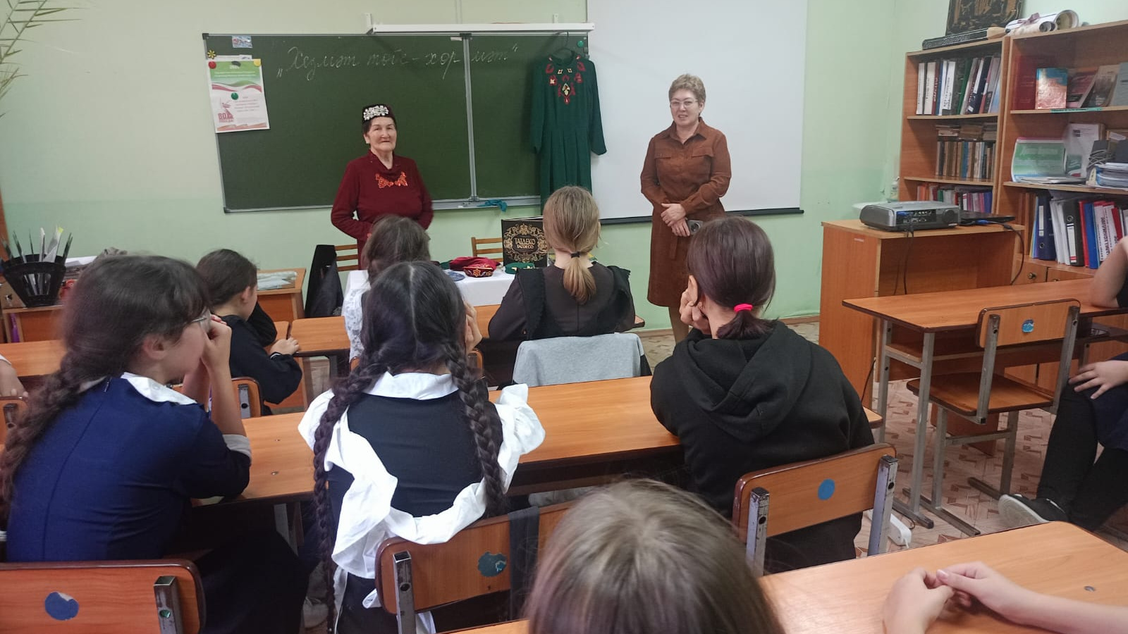 Баулы районы ветераннар оешмасы президиумы әгъзасе Шараева Рәзинә Закирҗан кызы, лекторлар группасынын актив члены, Исергәп урта мәктәбендә укучылар һәм укытучылар катнашында"Халык җәүһәрләре-милли киемнәрдә" дигән,тарихи истәлекләргә бай булган татар хатын-кызларның милли киемнәренен үзенчәлекләре турында сөйләде.