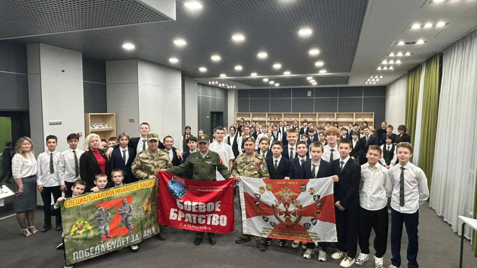 Ветераны Альметьевского «БОЕВОГО БРАТСТВА» провели урок мужества в школе «Адымнар». Сегодня в школе «Адымнар» в Альметьевске прошел урок мужества для учеников шестых классов. Его провели ветераны местного отделения «БОЕВОГО БРАТСТВА»: • Дамир Тухфатуллин • Александр Голев • Егор Саврентьев «Настоящее мужество — это не просто готовность к подвигу. Это ежедневный выбор: быть честным, помогать слабым, нести ответственность за свои слова и поступки. Наша сила — в правде, в памяти предков и в вере в свою страну», - подчеркнул Александр Голев. Гости открыто делились своими боевыми историями, рассказывали о трудностях солдатской судьбы, испытаниях, через которые им пришлось пройти. Они говорили о стойкости духа, настоящей мужской дружбе и взаимовыручке, которая не раз помогала выстоять в самые тяжелые моменты. Ветераны объяснили ребятам, какими качествами должен обладать настоящий мужчина: смелостью, честностью, ответственностью, готовностью прийти на помощь. Они призвали юношей расти достойными гражданами, способными защищать свою страну, семью и народ.
