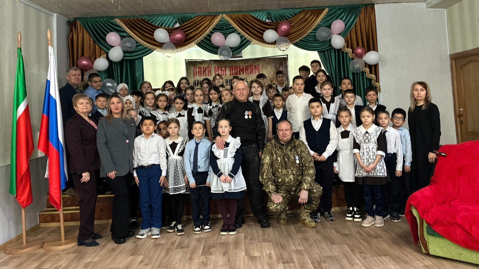 Воспитание патриотизма и уважения к подвигам героев – вот главная задача «Урока мужества», состоявшегося сегодня в МБОУ «СОШ13» Всё чаще главной темой уроковстановится специальная военная операция. Из первых уст ребята узнают о мужестве бойцов на передовой, их смелости и отваге. Приглашёнными гостями урока стали выпускники школы, участники СВО- Илюхин Александр Геннадьевич и Казаков Григорий Иванович. Встречис участниками специальной военной операции давно стали традиционными в нашей школе. Во время урока участники СВО рассказали о трудных боевых ситуациях и о том, как удалось с ними справляться, о мужестве и героизме сослуживцев, о патриотическом духе и поддержке со стороны россиян. Трогательным было выступление дочери нашего героя - Илюхиной Амелии. Она выступила с сочинением «Мой Папа-Герой» Директор школы Азизова Гульсина Надершановна выразила слова благодарности, поздравила наших гостей с Днём Героев Отечества и вручила благодарственные письма за активное участие в патриотическом воспитании школьников.