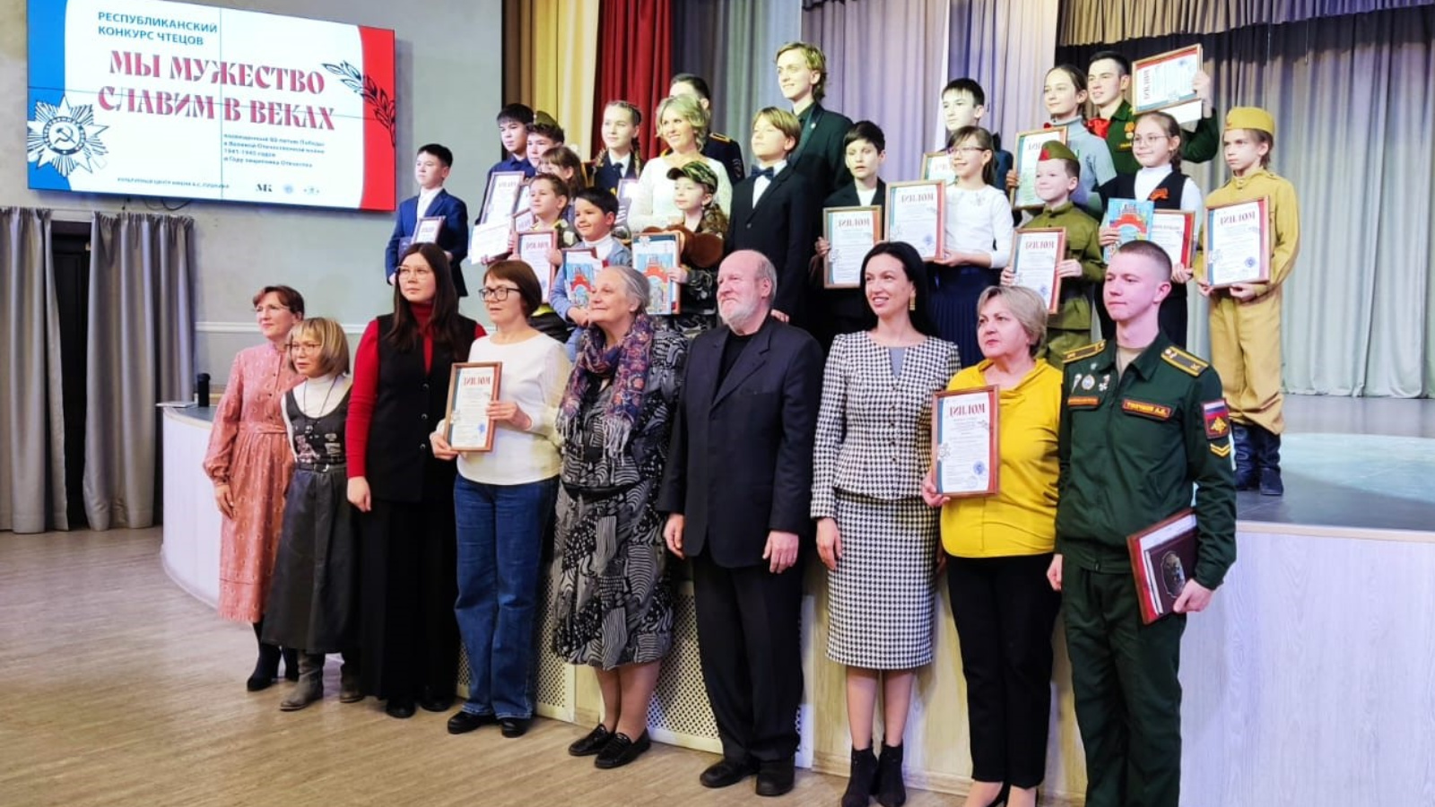 В день Героев Отечества Культурный центр имени А.С. Пушкина пригласил ветеранов Великой Отечественной войны, тружеников тыла, семьи воинов Специальной военной операции, студентов, школьников на заключительный концерт Республиканского конкурса чтецов «Мы мужество славим в веках». Конкурс был посвящён 80-летию Победы в Великой Отечественной войне 1941-1945 г.г. и Году защитника Отечества. Учредители конкурса Министерство культуры Республики Татарстан, Региональная общественная организация «Русское национально-культурное объединение Республики Татарстан». Организатор конкурса Культурный центр имени Александра Сергеевича Пушкина, который хранит литературное наследие и создаёт условия для рождения новых талантов.