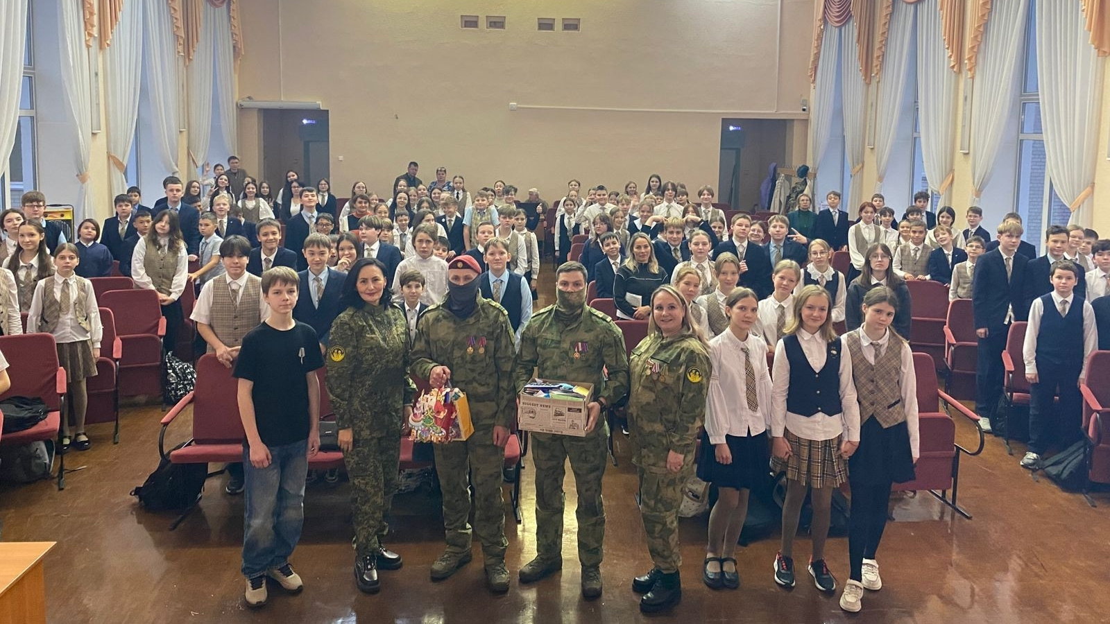 Педагоги и учащиеся поблагодарили всех участников, пришедших в гимназию на откровенный разговор о происходящем в стране и в мире, за их смелость и готовность делиться своим опытом участия в СВО, в сборе и доставке гуманитарной помощи бойцам и гражданскому населению республик Донбасса.