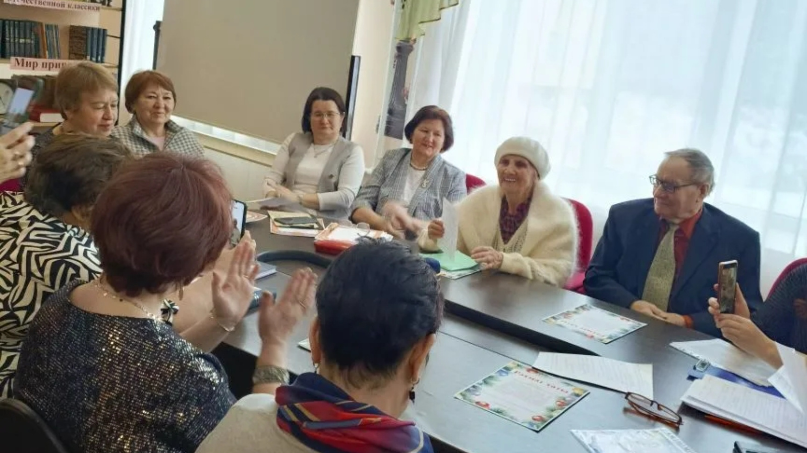 Лениногорск ветераннар Советы "Чишмэ*ижат берлэшмэсе утырышын яшь иҗатчылар белэн түгәрәк өстәл артында сйләшү, фикер алышу форматында үткәрде. Ел нәтиҗәләре ,Яна елга планнар,аларны тормышка ашыру юллары барланды,нәтиҗәле дип тапканнарын дәвам итәргә киңәш ителде.Туган илне яклаучылар елында актив катнашучыларга рэхмэт хаты тапшырылды.85 яшьлек Мәһәршә Валиуллованың мәхэббәт турындагы шигырьләре яшь калэм тибрәтүчеләрне дә таң калдырды.Яшьләр белэн кулга-кул тотынып эшләү өлкәннәргә дә файдалы булыр.Буыннар чылбырының өзелмичә дәвам итүе бу.