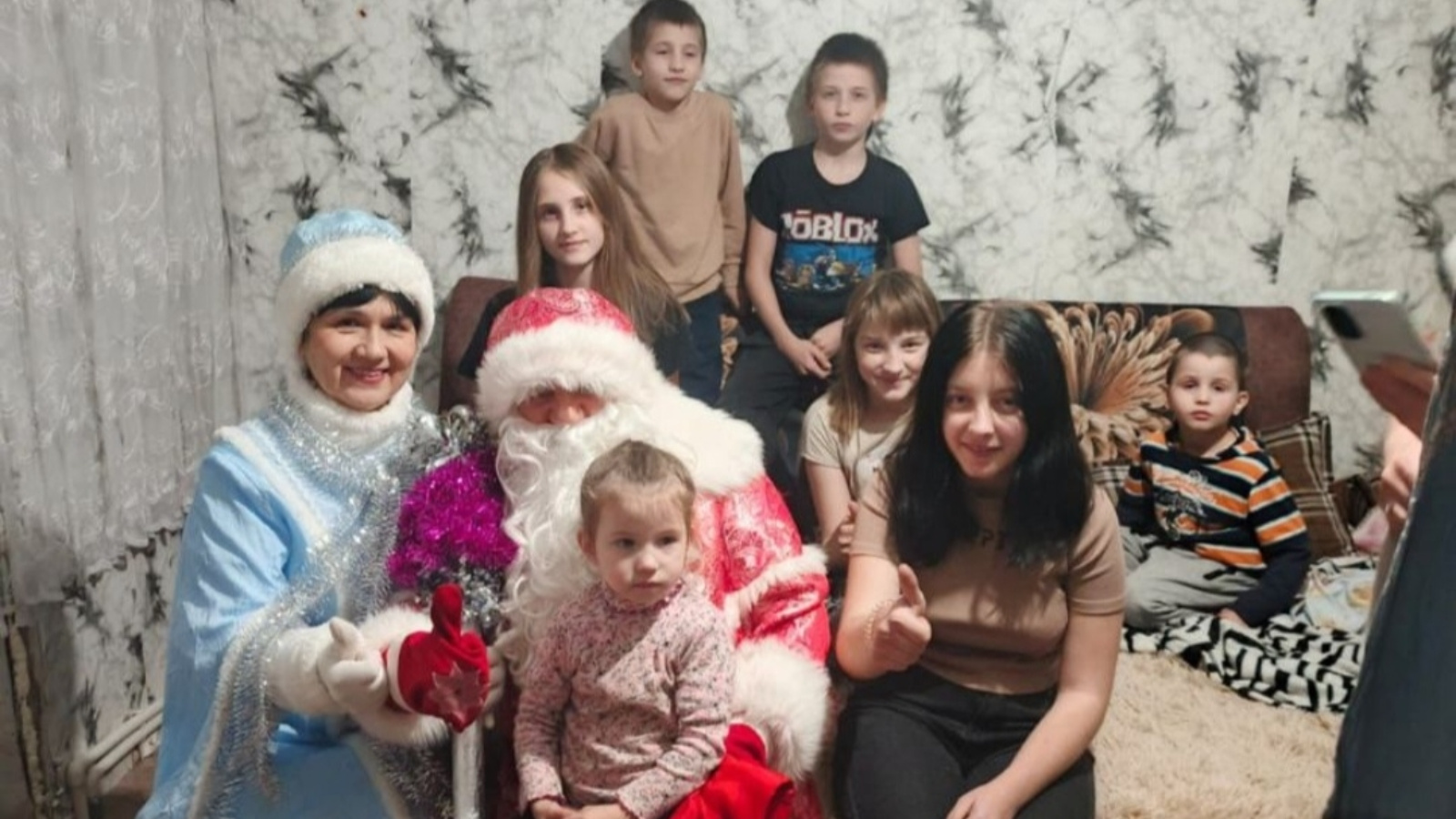 В рамках всероссийского проекта «Связь поколений» председатель и заместитель председателя городского Совета ветеранов (пенсионеров) Т.Н.Тихонова и О.В.Лазарева в образах Снегурочки и Деда Мороза поздравили труженицу тыла Прасковью Ивановну Беспалову, которой в октябре 2025 года отметила свой 105-летнитй юбилей, а так же детей из многодетных семей и вручили сладкие гостинца. Вместе рассказывали стихи, отгадывали загадки, пели песни и водили хороводы.