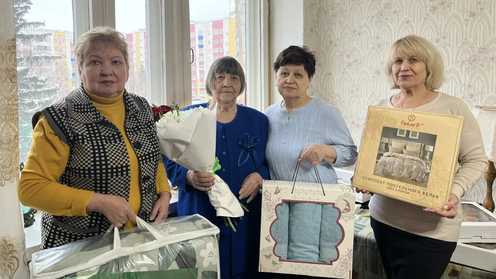 Поздравили юбиляра заместитель председателя Совета ветеранов АМР по социальным вопросам Царева Н.А, старшая медицинская сестра поликлиники1 АЦРБ Бодрягина Н.П., председатель совета ветеранов Альметьевской ЦРБ Галлямова Ф. Г. Вручили цветы, подарки и от всей души пожелали юбиляру крепкого здоровья, благополучия на долгие годы.