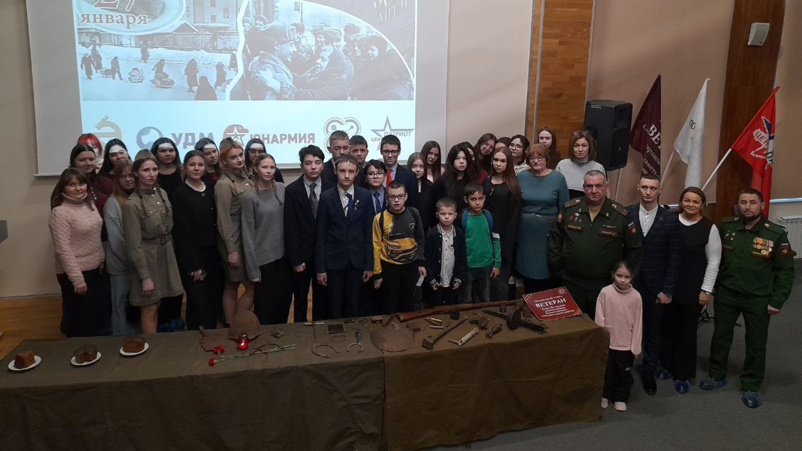 27 января 29026г Совет ветеранов Альметьевского МР принял участие в мероприятии, посвященном снятию блокады Ленинграда. Собрались в зале Кванториума, чтобы вспомнить одно из величайших испытаний нашего народа — снятие блокады Ленинграда. Это событие навсегда останетсяв нашей истории символом мужества, стойкости и несгибаемой воли. Гости могли увидеть настоящий хлеб весом всего лишь 125 граммов, которым жители получали свою суточную норму еды. Каждый кусочек имел огромное значение для выживания. Каждый участник получилпамятный талончик на получение порции хлеба, аналогичного тому, что выдавался жителям осажденного города. Эта акция помогла глубже прочувствовать трагедию блокады и передать будущим поколениям уважение к героизму наших дедов и бабушек. Одним из важнейших моментов мероприятия стала минута молчания. Мы почтили светлую память всех героев, сражавшихся за свободу и независимость Родины.