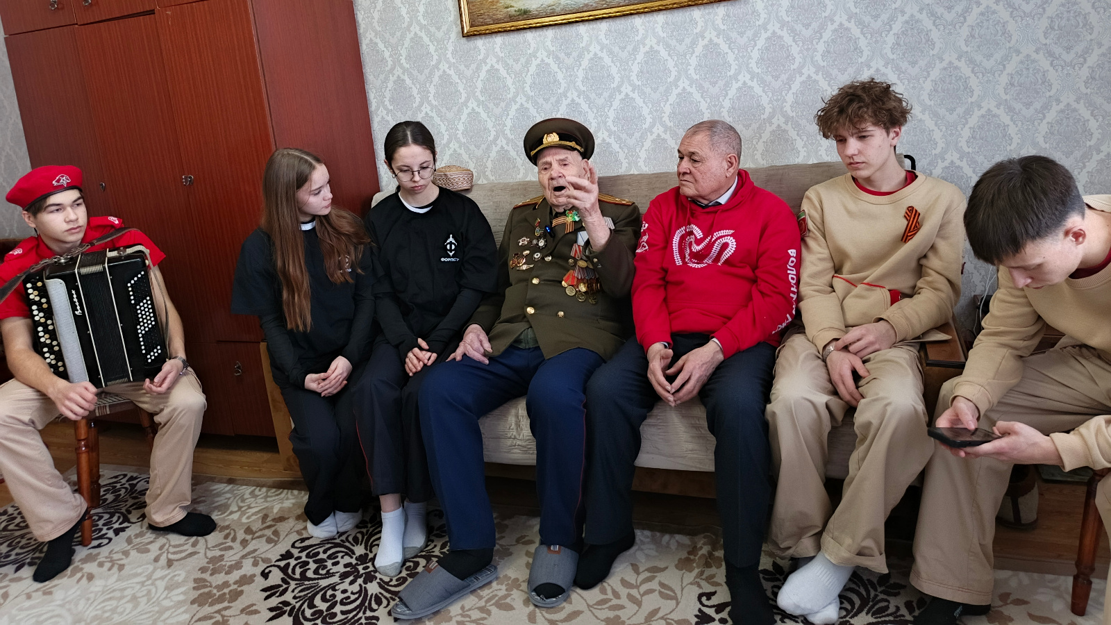 Активисты ФОРПОСТ и участники Движения Первых г. Буинска совместно с членами лекторской группы посетили участника Великой Отечественной войны Рауфа Ибрагимовича Тухватуллина.