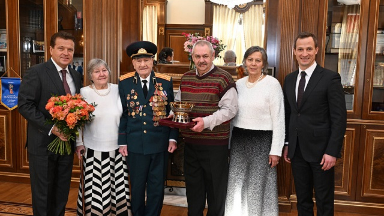 Наш легендарный ветеран, шагнувший в свой вековой юбилей, в день юбилея был в исполкоме, в гостях у Мэра города Ильсура Метшина. За чашкой чая звучали тёплые слова и воспоминания, а самым трогательным моментом стала семейная история.