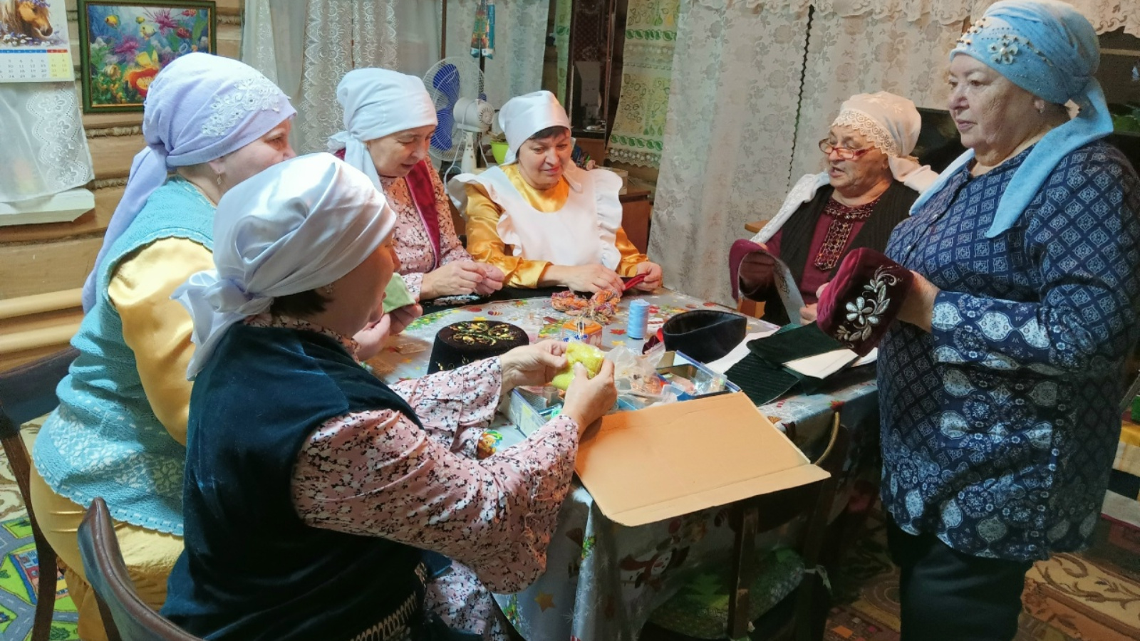 Үзенчәлекле чигү төрләрен барлауны һәм кул эшләре белән танышуны мөһим дип санап, авылдашыбыз Тәскирә апа Ахметзяновада "Серле энә"(Волшебная иголка)исеме астында мастер-класс үткәрдек.Ул безгә түбәтәй,калфак тегү-чигүнең барлык нечкәлекләрен аңлатты,күрсәтте.