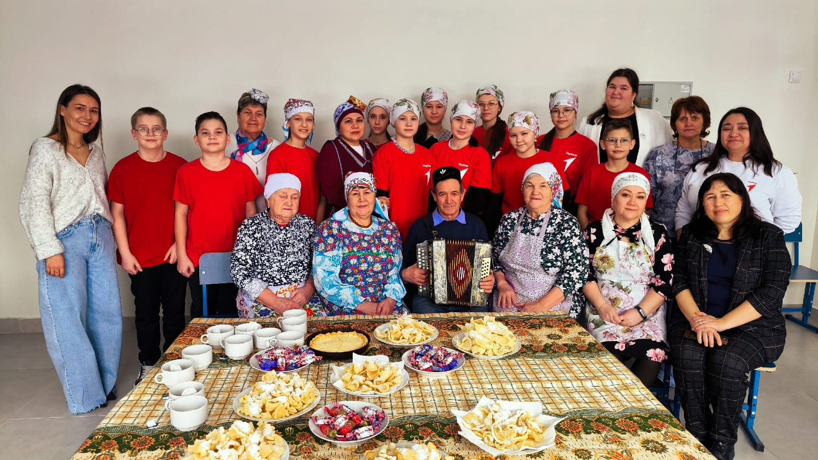 В рамках проекта "Память" накануне Международного женского дня 8 марта прошла встреча ветеранов Ямашурминского сельского поселения со школьниками. Ветераны приняли приглашение руководства школы и провели мастер-класс по изготовлению татарской национальной выпечки кош-теле (хворост). Ветераны поделились своими рецептами, показали приемы работы с тестом, рассказали об особенностях выбора продуктов и жарки хвороста.