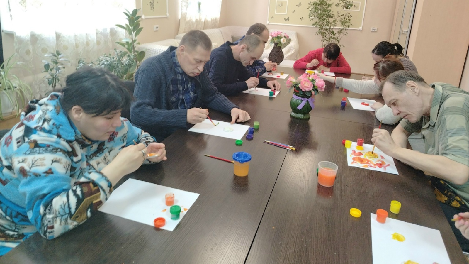 В преддверии весеннего праздника в Чистопольский дом – интернат пришла заместитель председателя Городского Совета ветеранов Лазарева Ольга Владиславовна и провела мастер-класс по раскрашиванию гипсовых розочек. Подопечные с бурной фантазией подошли к намеченной цели и раскрасили розы в разноцветные цвета и даже нарисовали весенние картины. Получился праздничный цветной сад из цветов.