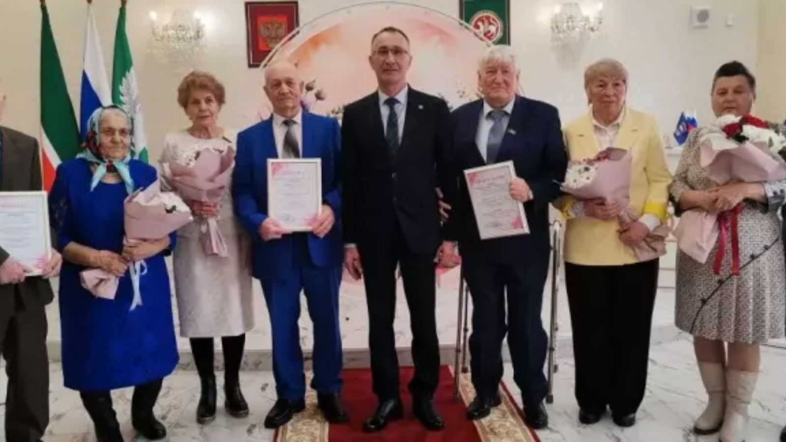 В зале торжеств отдела ЗАГС чествовали супружеские пары, чей совместный путь измеряется не просто годами, а золотыми и бриллиантовыми юбилеями. Мероприятие прошло в рамках федерального проекта партии «Единая Россия» «Крепкая семья», который призван защищать права семей и поддерживать семейные ценности. И кто, как не представители «старой гвардии» - люди, пронесшие тепло домашнего очага сквозь десятилетия, - знают в этом толк? Толк в сохранении семейных устоев, самой семьи. В центре внимания оказались люди, некогда составлявшие славу Ютазинского края. Сегодня многие из них являются активистами районного совета ветеранов, их личные истории - это символ надежности и мудрости. Владимир Иванович и Фирая Салиховна Петровы из поселка Уруссу, отметившие изумрудную (55-летие) свадьбу; Фанис Фаритович и Забира Муртазиновна Билаловы из Дым-Тамака золотую, их брак длится уже 50 лет; Наиль Гимаевич и Галима Габделхаевна Садыковывместе уже 60 лет. Значимость событию придало участие главы района Аяза Шафигуллина. Он тепло поздравил почтенные семейные пары, отметив их вклад в воспитание достойных детей и внуков, а также вручил юбилярам подарки и поздравительные свидетельства. Приехали поздравить своих земляков и главы поселений. Трогательным моментом стало присутствие на празднике детей, внуков и правнуков юбиляров. Для них эти седовласые, но такие счастливые люди - главный пример для подражания. Украшением торжества стали творческие подарки, в том числе в исполнении лауреатов фестиваля «Балкыш».