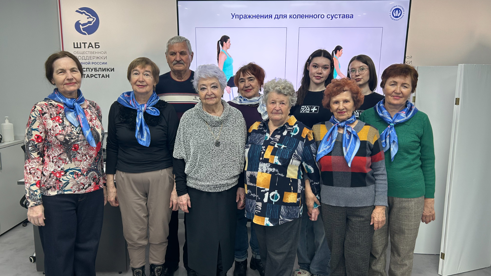 Суставлар (буыннар) өчен гимнастика "Бердәм Россия"нең иҗтимагый ярдәм штабына бер төркем өлкән яшьтәге пенсионерлар берничә ел йөрибез. Штабта бу төркем катнашында атнасына ике мәртәбә төрле чаралар үткәрелә. Һәр чәршәбе саен Казан медицина университеты студентлары - волонтёр-медиклар сәламәтлек темасына төрле тематика буенча лекция сөйлиләр, тема буенча материаллар хәтердә калсын өчен слайдлар күрсәтәләр. Өлкән яшьтәгеләр өчен иң борчый торган мәсьәләләрнең берсе - аяк-кулларда суставларның (буыннарның) авыртуы. Шуның өчен бу темага лекция тыңлагач, буын авыруларын кисәтү һәм булдырмау өчен төрле төрдәге гимнастик күнегүләр ясыйбыз. Күнегү төрләрен кабатлап, өйдә дә даими рәвештә гимнастика ясыйбыз. Безнең сәламәтлекне кайгыртып, шундый эш алып барулары өчен волонтёр- медикларга рәхмәтебезне белдерәбез.