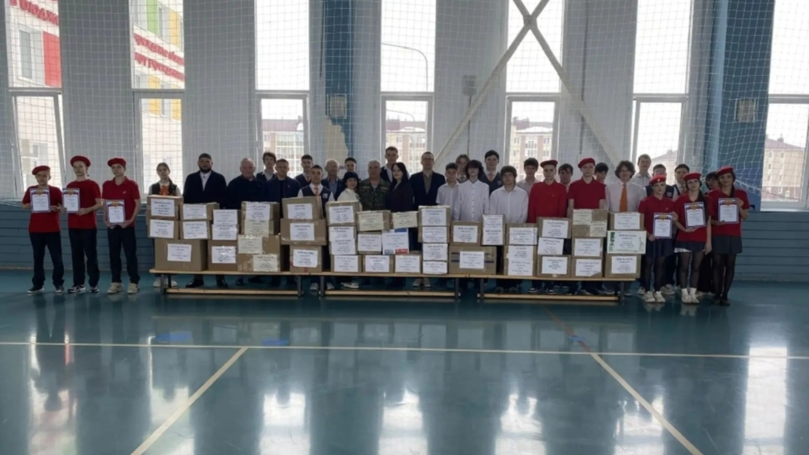 В лицее № 2 Чистополя организовали добрую и важную гуманитарную акцию «Мой подарок солдату». Учащиеся всех классов, их родители и педагоги собрали необходимые для наших бойцов вещи. Десятки коробок с гуманитарным грузом передали волонтерам на общелицейской линейке, на которую были приглашены почетные гости, в том чи сле председатель Совета ветеранов (пенсионеров) ЧМР РТ Тихонова Т.Н. и член президиума Совета ветеранов, председатель комиссии по патриотическому воспитанию молодежи Шигабутдинов Р.Х. Каждый из них поблагодарил лицеистов, их родителей и учителей за весомый вклад в помощь фронту. Активных участников патриотической работы, в том числе юнармейцев лицея, наградили грамотами. Награды вручали директор лицея № 2 Руслан Зелинский и учитель ОБЗР, ветеран боевых действий в Афганистане, военный вертолетчик, офицер запаса Азат Акбаров.