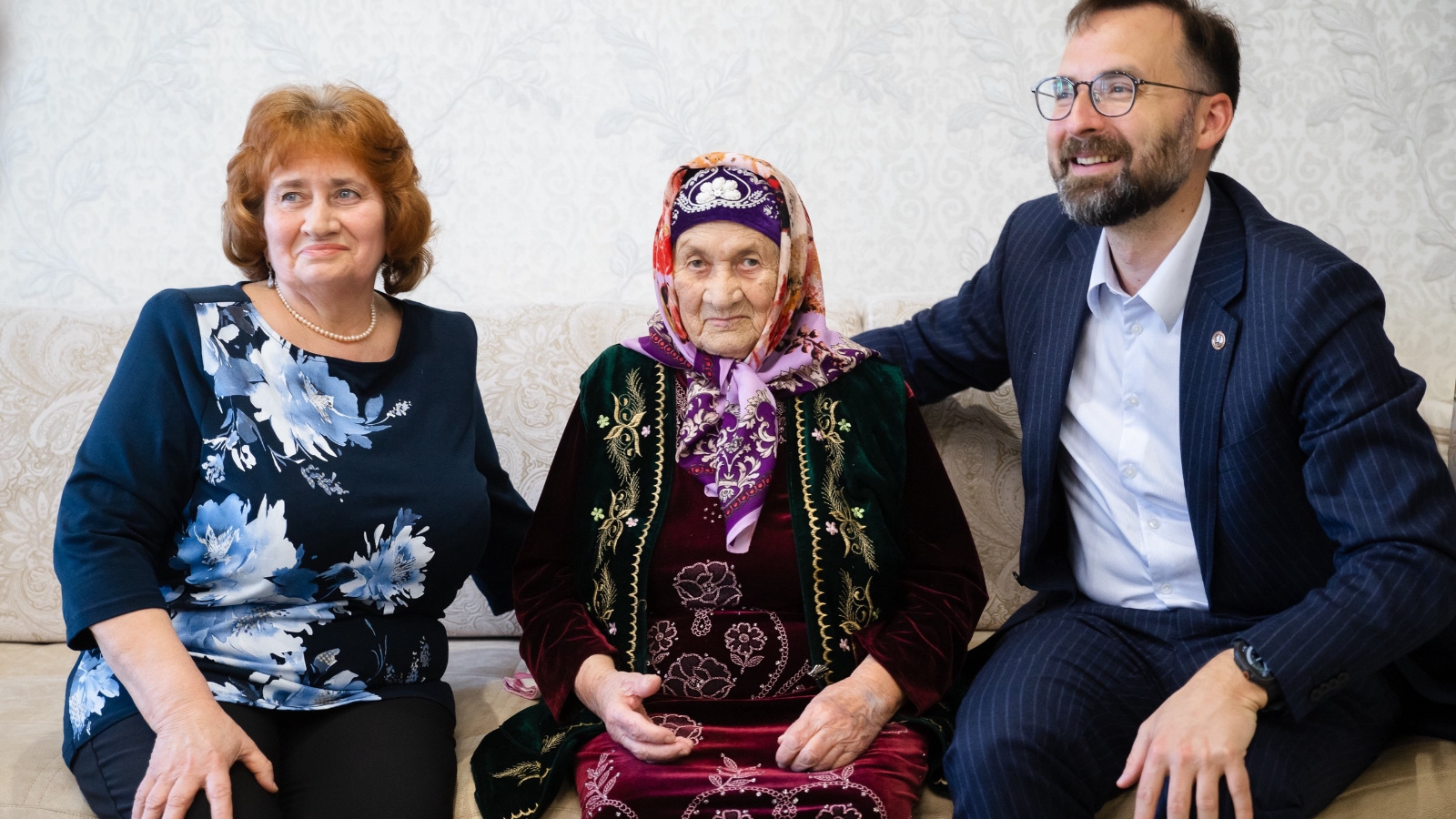 Глава администрации Кировского и Московского районов Владимир Владимирович Жаворонков поздравил с 101‑летием жительницу Кировского района, труженицу тыла Кариму Мухаметдиновну Султанову.